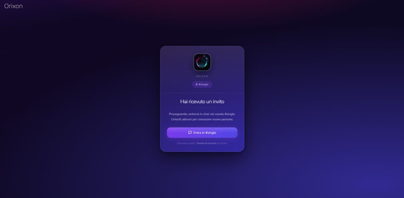 Abbiamo rimodernato anche l’interfaccia del link d’invito, allineandola meglio alla brand identity di Orixon.