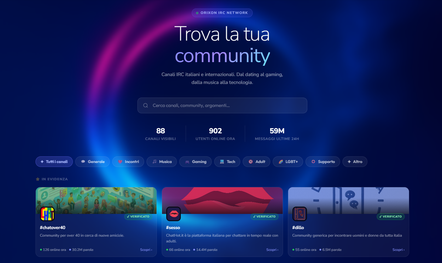 Vogliamo aiutare le chat più piccole presenti su Orixon a crescere in modo organico, offrendo loro maggiore visibilità.